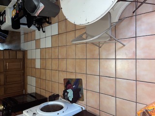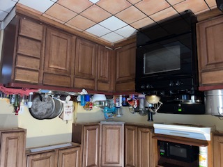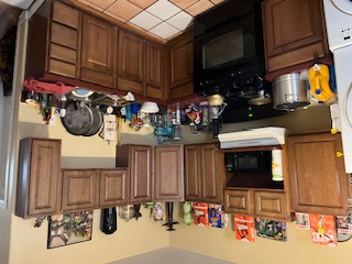 Challenges: not enough storage, that's why things were bursting at the seams, dated but high-quality cabinetry, washer/dryer unit misplaced, dated flooring, non-existent food venting above range, teeny tiny microwave.